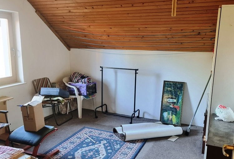 Hiša ima v mansardnem delu tri sobe, prostor za kopalnico, ki trenutno ni dokončana, hodnik ter balkon s prelepim razgledom.