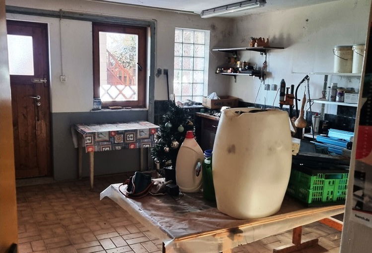 Ogrevanje je urejeno s pečjo na tekoče gorivo.