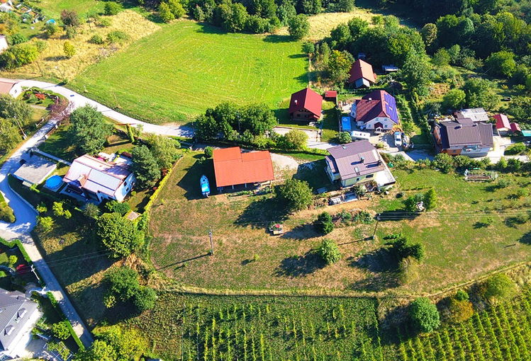 Samo zemljišče je na izjemni razgledni lokaciji, v mirni coni stanovanjskih objektov, ob lokalni cesti. Zemljišče je velikosti 750 m2.