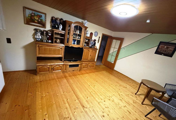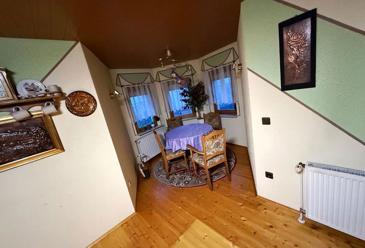 Hiša ima v mansardnem delu tri sobe, prostor za kopalnico, ki trenutno ni dokončana, hodnik ter balkon s prelepim razgledom.