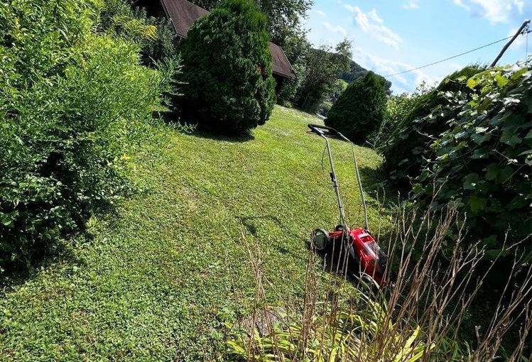 Zemljišče v velikosti 880 m² ima urejeno zelenico ter je na cestni strani ograjeno.